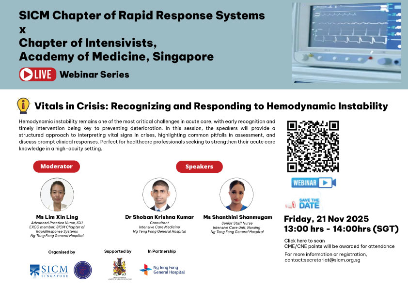 This Webinar is held in partnership with Khoo Teck Puat Hospital and the Chapter of Intensivists.